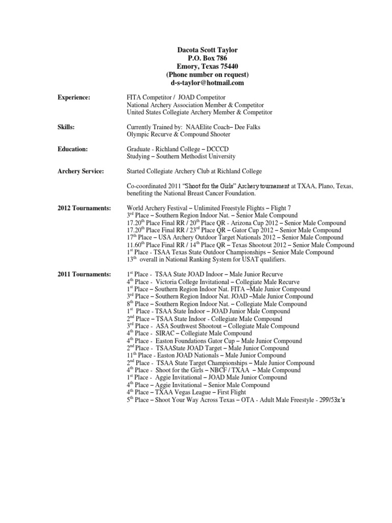 D Taylor Shooting Resume PDF Archery Marksmanship