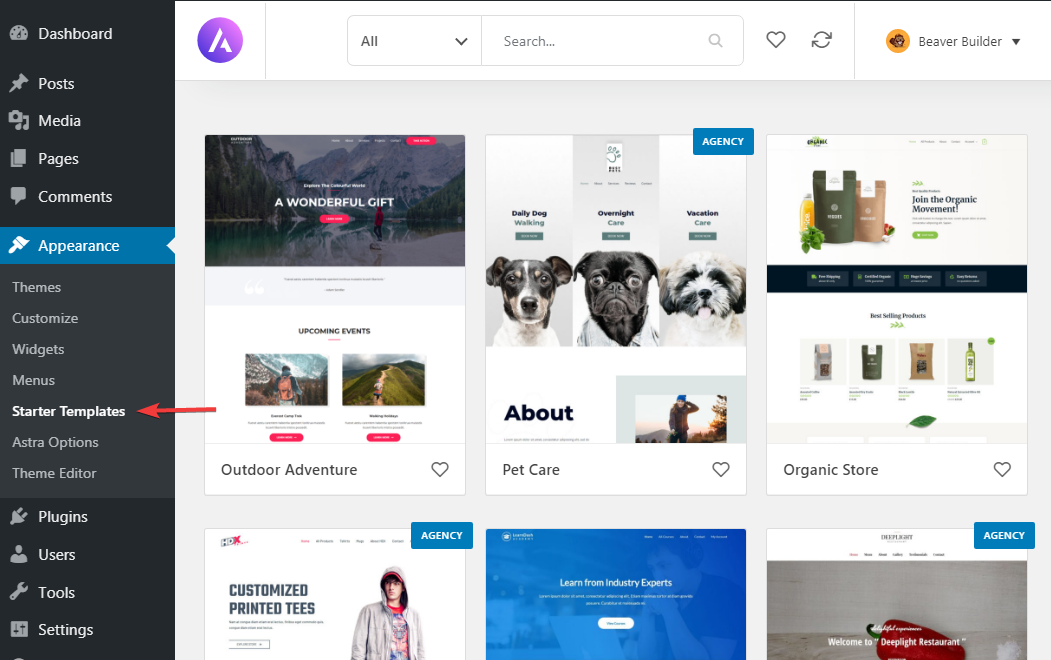 Theme Independent Templates All The Starter Templates, Whether Pages Or Websites Can Be Used.