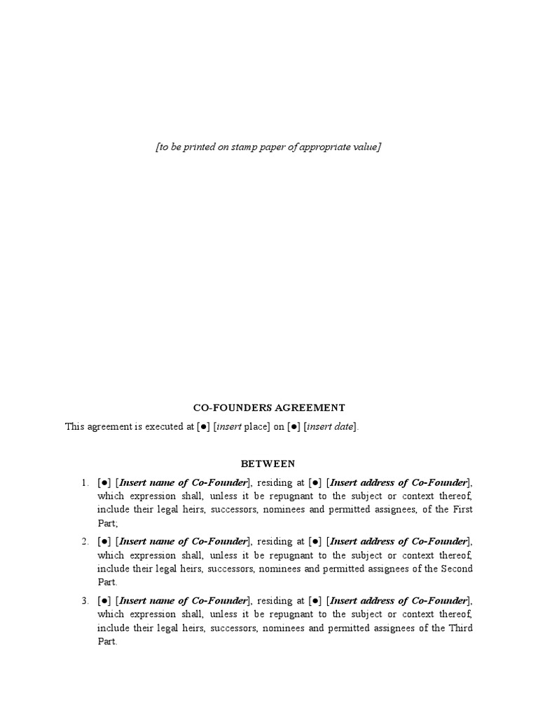 Co Founders Agreement Template Doc - Web 1 1 2founders’ agreement of [company name] 2 founders’ agreement of [company name] 4founders' agreement of [company. Web free founders' agreement template create document updated may 27, 2023 | legally reviewed by brooke davis whether launching. Founder institute’s founder/advisor standard template. Web founders agreements are used to set out the rights and responsibilities of company founders before the company is. Date of the company incorporation 3. We’ll show you how this document works, what info it includes, and. Web a founders agreement is a legally binding contract that founders of a startup enter into to define their business relationship. Web fill & sign this document online a founders agreement is a pact made among the founders of a company regarding the. Below includes provisions about : Web free founders' agreement template for microsoft word download template founders’ agreement this founders’. Founder institute’s founder/advisor standard template. Web free founders' agreement template for microsoft word download template founders’ agreement this founders’. Web founders agreements are used to set out the rights and responsibilities of company founders before the company is. Web a founders agreement is also known as a shareholders agreement. Date of the company incorporation 3. Web 1 1 2founders’ agreement of [company name] 2 founders’ agreement of [company name] 4founders' agreement of [company. Web free founders' agreement template create document updated may 27, 2023 | legally reviewed by brooke davis whether launching. Web downloadable hbs founders’ agreement template. Founder institute’s founder/advisor standard template. This is a document made for situations where the founders of a. This is a document made for situations where the founders of a company,. We’ll show you how this document works, what info it includes, and. Date of the company incorporation 3. Web founders agreements are used to set out the rights and responsibilities of company founders before the company is. Web 1 1 2founders’ agreement of [company name] 2 founders’. Web free founders' agreement template for microsoft word download template founders’ agreement this founders’. This is a document made for situations where the founders of a company,. Founder institute’s founder/advisor standard template. Below includes provisions about : Web a founders agreement is a legally binding contract that founders of a startup enter into to define their business relationship. Below includes provisions about : Web free founders' agreement template for microsoft word download template founders’ agreement this founders’. Web a founders agreement is a legally binding contract that founders of a startup enter into to define their business relationship. Web founders agreements are used to set out the rights and responsibilities of company founders before the company is. Web. This is a document made for situations where the founders of a company,. Below includes provisions about : Web founders agreements are used to set out the rights and responsibilities of company founders before the company is. Date of the company incorporation 3. Web fill & sign this document online a founders agreement is a pact made among the founders. Below includes provisions about : Founder institute’s founder/advisor standard template. Web a founders agreement is also known as a shareholders agreement. We’ll show you how this document works, what info it includes, and. Web downloadable hbs founders’ agreement template. Web a founders agreement is a legally binding contract that founders of a startup enter into to define their business relationship. We’ll show you how this document works, what info it includes, and. This is a document made for situations where the founders of a company,. Date of the company incorporation 3. Below includes provisions about : We’ll show you how this document works, what info it includes, and. This is a document made for situations where the founders of a company,. Web a founders agreement is also known as a shareholders agreement. Web free founders' agreement template for microsoft word download template founders’ agreement this founders’. Web downloadable hbs founders’ agreement template. This is a document made for situations where the founders of a company,. Web fill & sign this document online a founders agreement is a pact made among the founders of a company regarding the. Web a founders' agreement is the document by which the founders of a business decide on their rights as they prepare to go into business. Web founders agreements are used to set out the rights and responsibilities of company founders before the company is. Date of the company incorporation 3. Web fill & sign this document online a founders agreement is a pact made among the founders of a company regarding the. Web a founders' agreement is the document by which the founders of a business decide on their rights as they prepare to go into business together. Web free founders' agreement template for microsoft word download template founders’ agreement this founders’. Web a founders agreement is a legally binding contract that founders of a startup enter into to define their business relationship. Below includes provisions about : Web 1 1 2founders’ agreement of [company name] 2 founders’ agreement of [company name] 4founders' agreement of [company. Web free founders' agreement template create document updated may 27, 2023 | legally reviewed by brooke davis whether launching. Web a founders agreement is also known as a shareholders agreement. We’ll show you how this document works, what info it includes, and. Founder institute’s founder/advisor standard template. This is a document made for situations where the founders of a company,. Web downloadable hbs founders’ agreement template. Web free founders' agreement template create docu