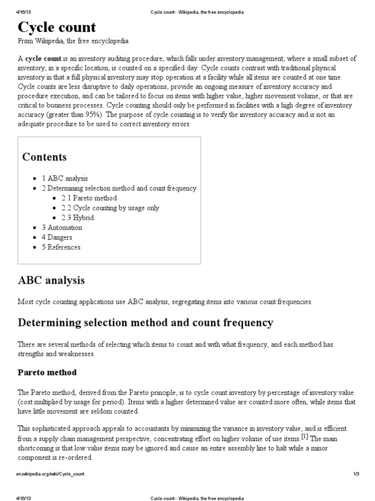 Cycle Count Wikipedia, The Free Encyclopedia Service Industries