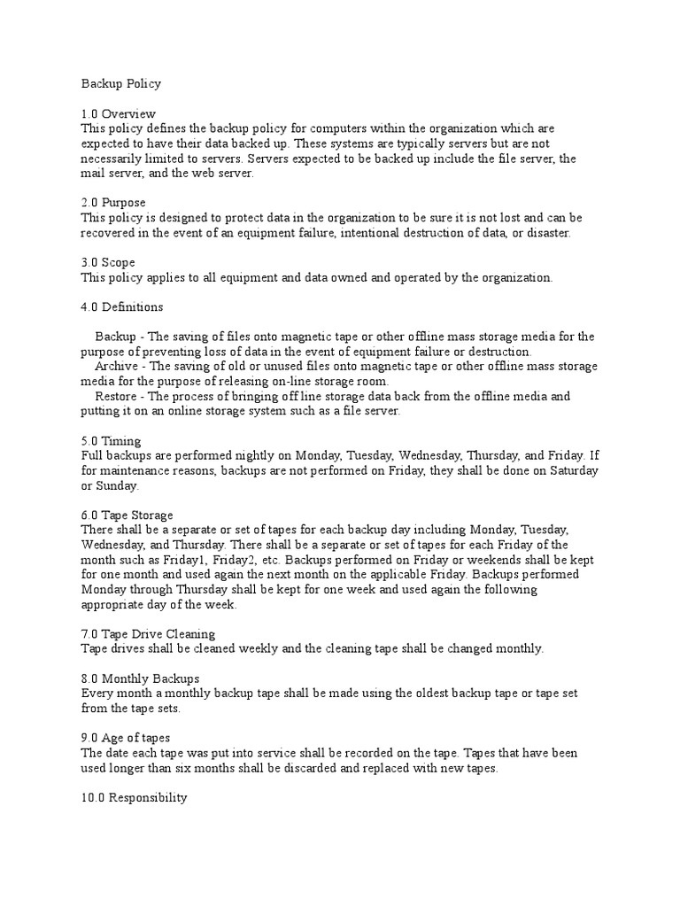 Data Backup and Recovery Policy Sample Free Download