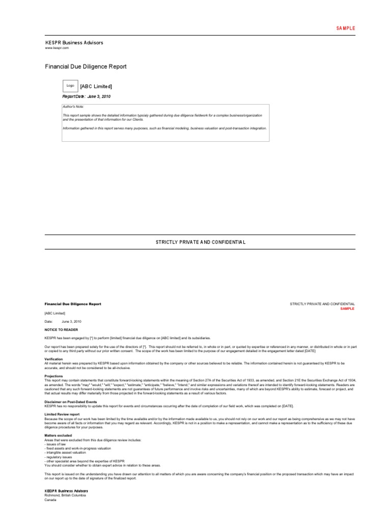 Due Diligence Report Samples