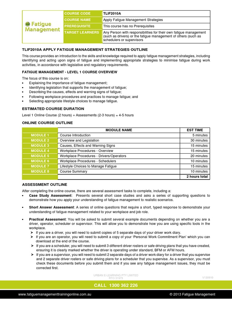 TLIF2010A Fatigue Management Course Outline Fatigue (Medical