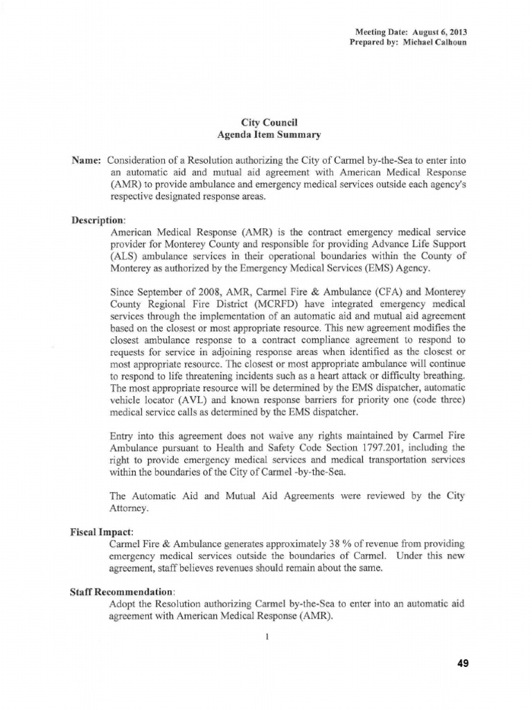 Fire Department Mutual Aid Agreement Template