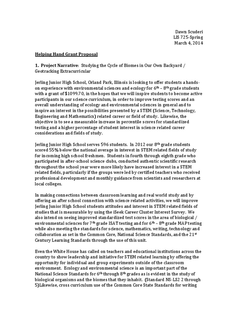 grant application narrative Teachers Students