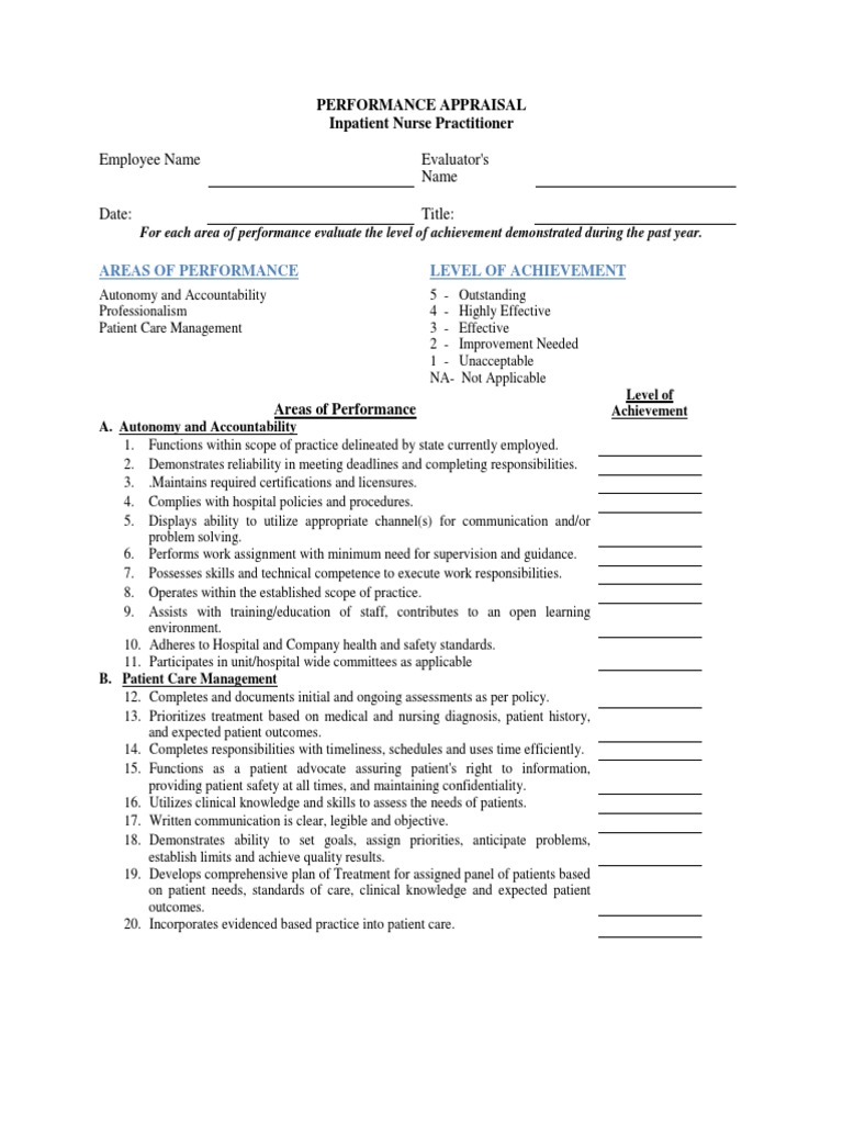 NPPerformanceAppraisalSample.pdf Patient Health Care