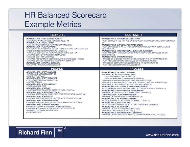 HR Scorecard Metrics Eg Competence (Human Resources) Employment