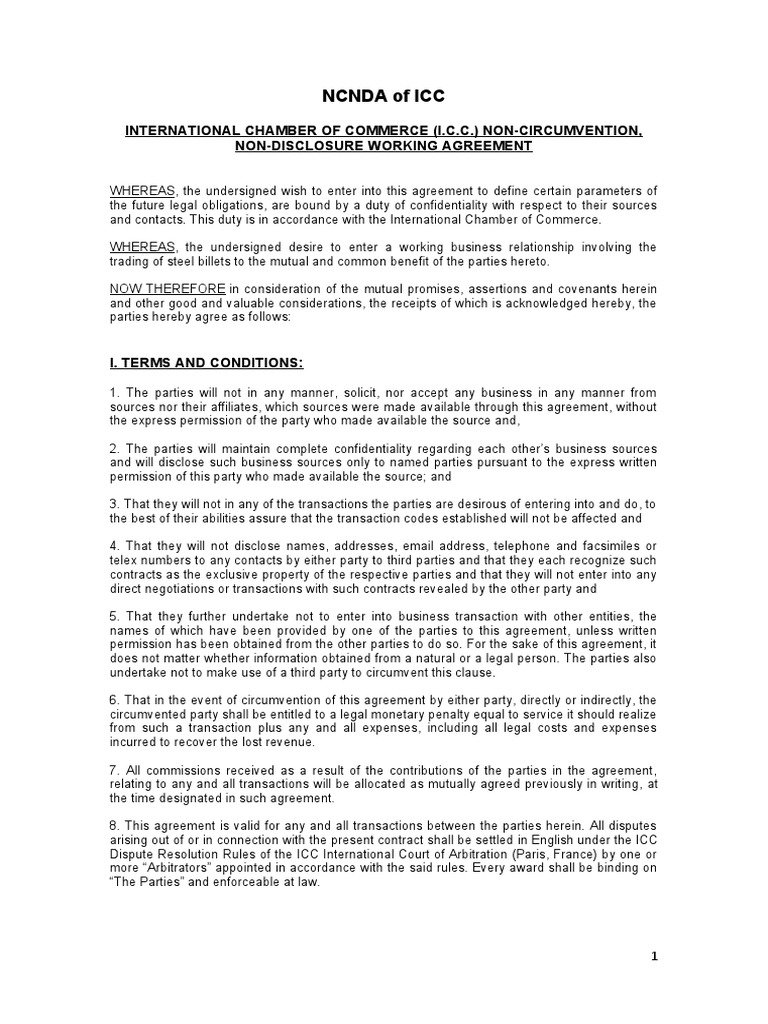 Contoh NCNDA Template ICC Financial Transaction Arbitration