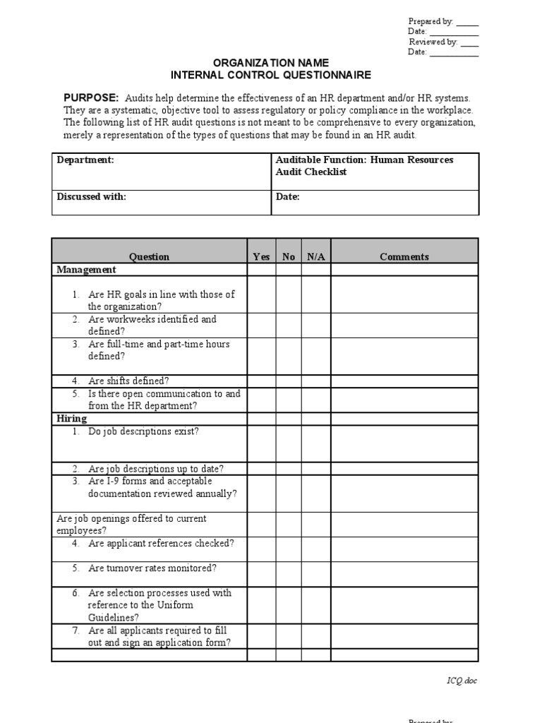 Human+Resources+Audit+Checklist Internal+Control+Questionnaire+Template