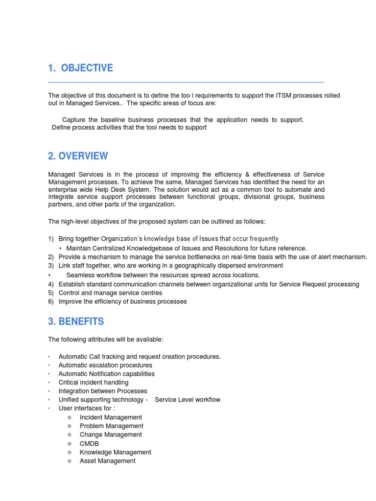 ITSM Process Tool Requirement Document PDF Itil Business Process