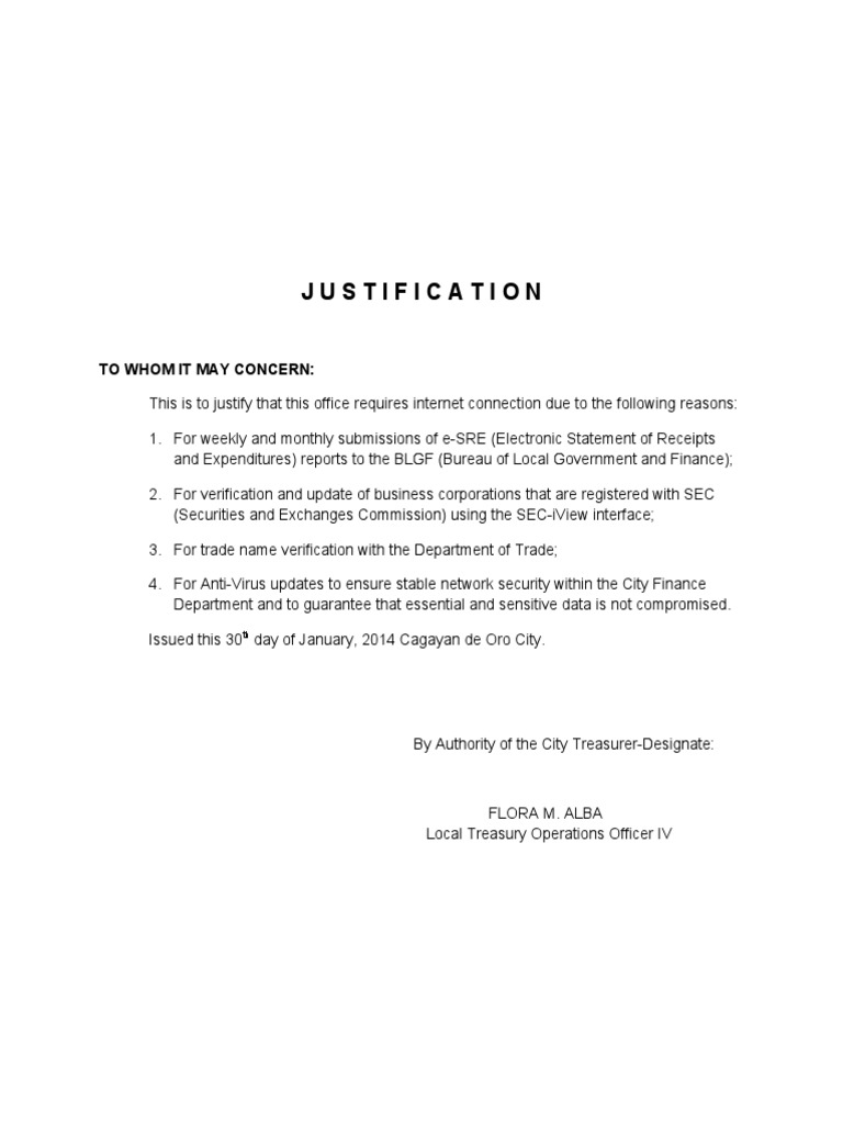 Sample Justification Letter