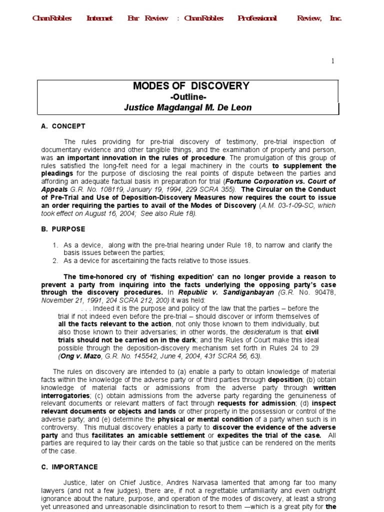 Modes of Discovery Outline Rev 2011 New Deposition (Law) Discovery