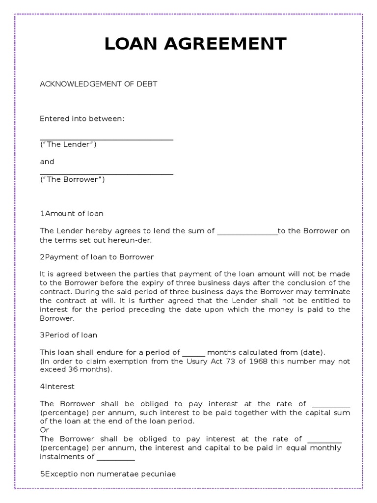 Web A Loan Agreement Is A Legal Contract Between A Borrower And A Lender.