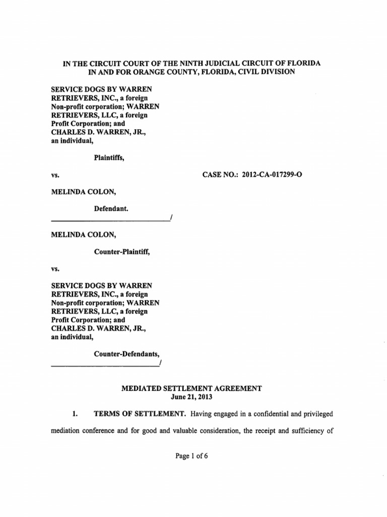 Mediation Settlement Agreement PDF