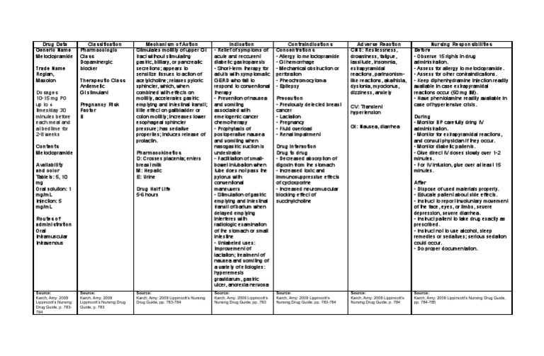 Metoclopramide Medication template with mechanism of action