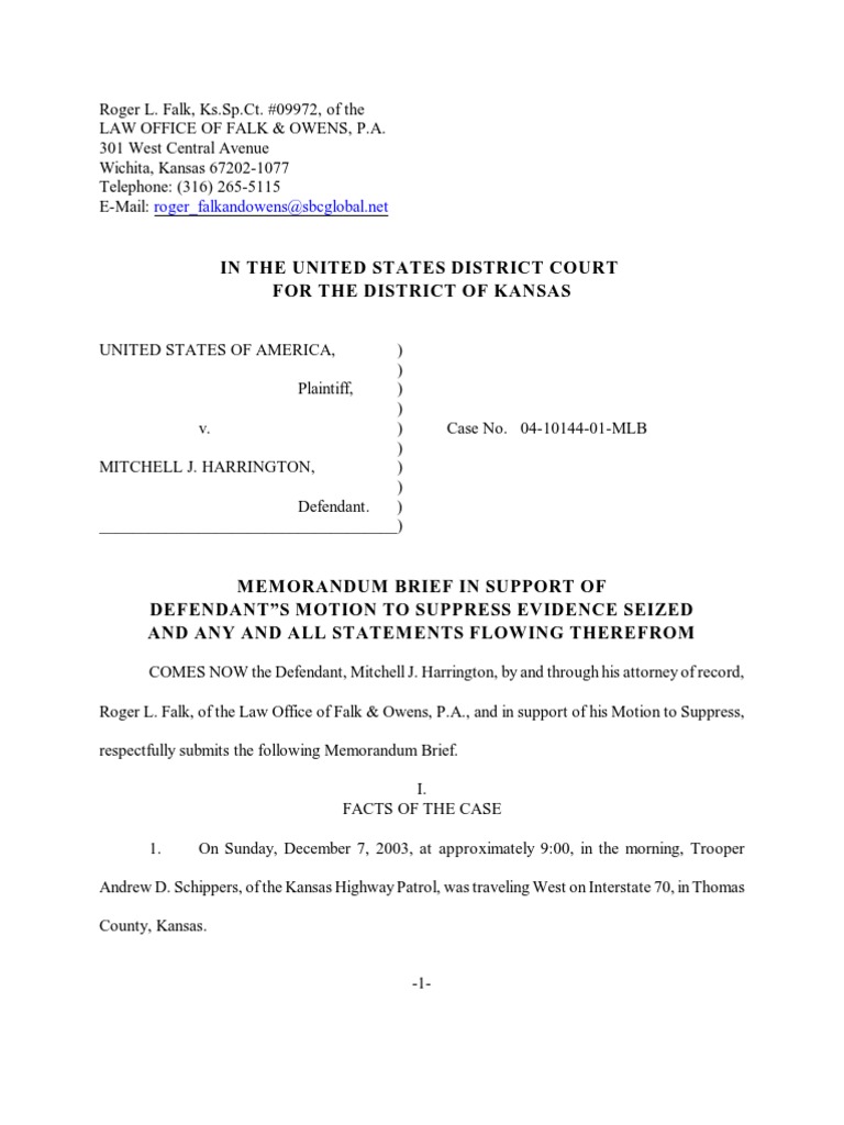 10 08 04 Memorandum in Support of Motion to Suppress Fourth Amendment
