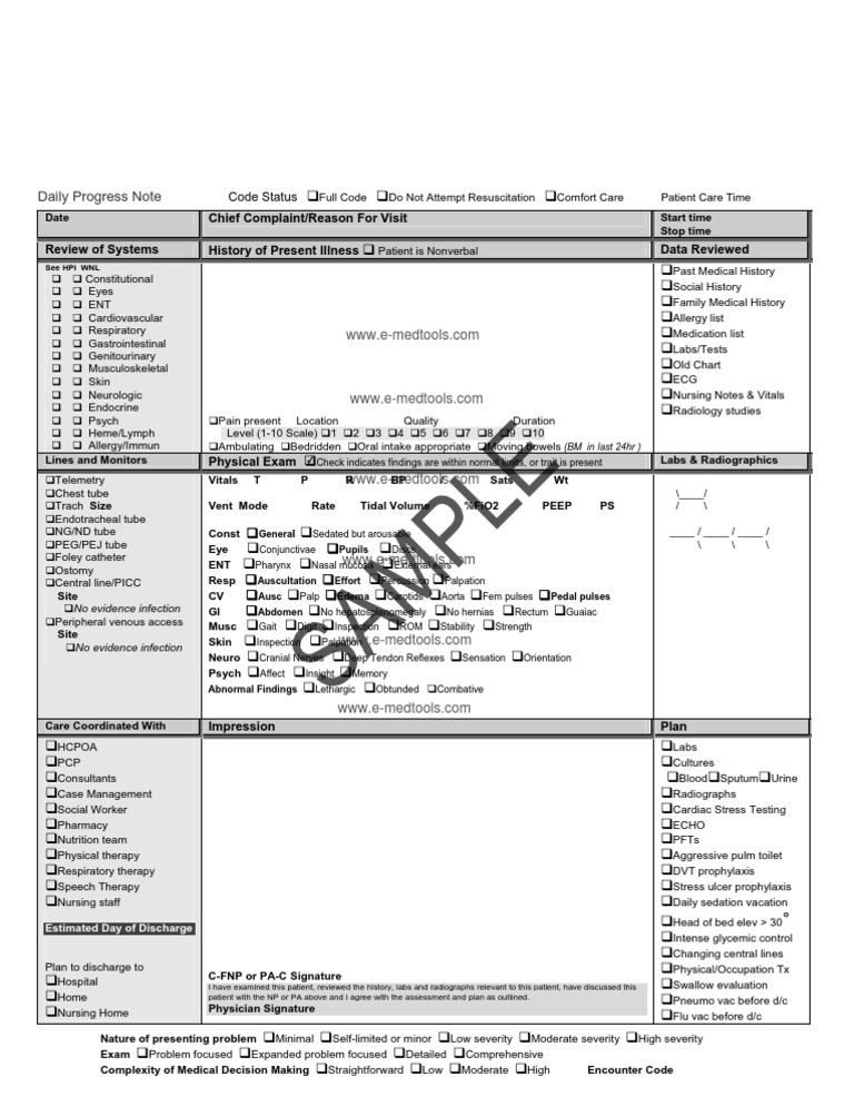 Hospital Follow Up Progress Note MedicalTemplate Physical Examination