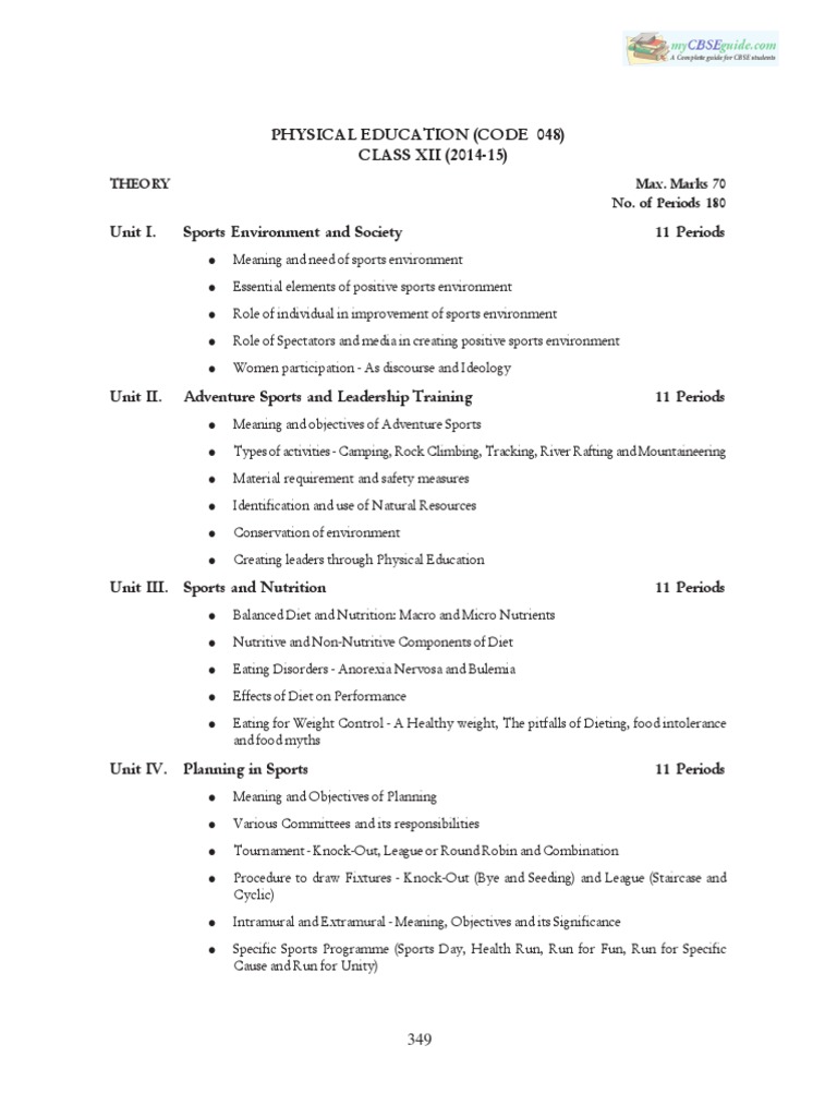 CBSE Class 12 Syllabus for Physical Education 20142015 Physical