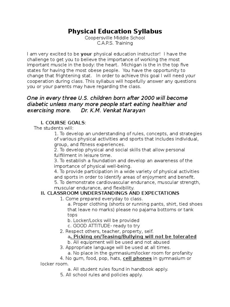 middle school pe syllabus Physical Education Physical Exercise