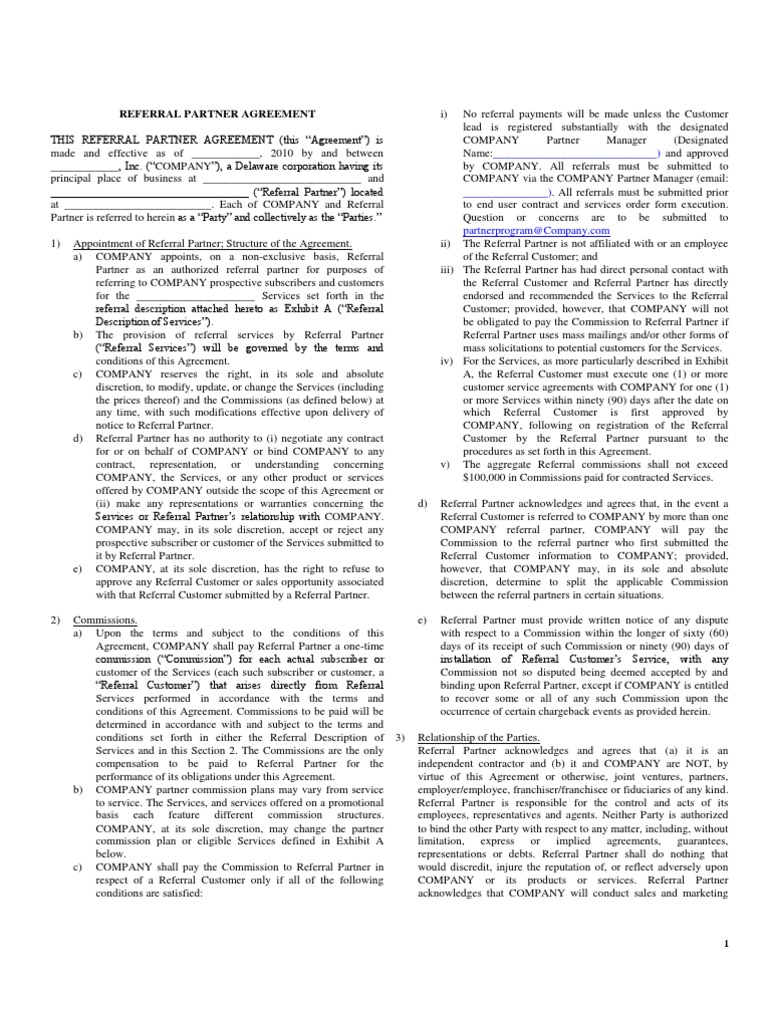 Web This Partner Referral Agreement Template Covers The Most Important Subjects And Will Help You To Structure And Communicate In.