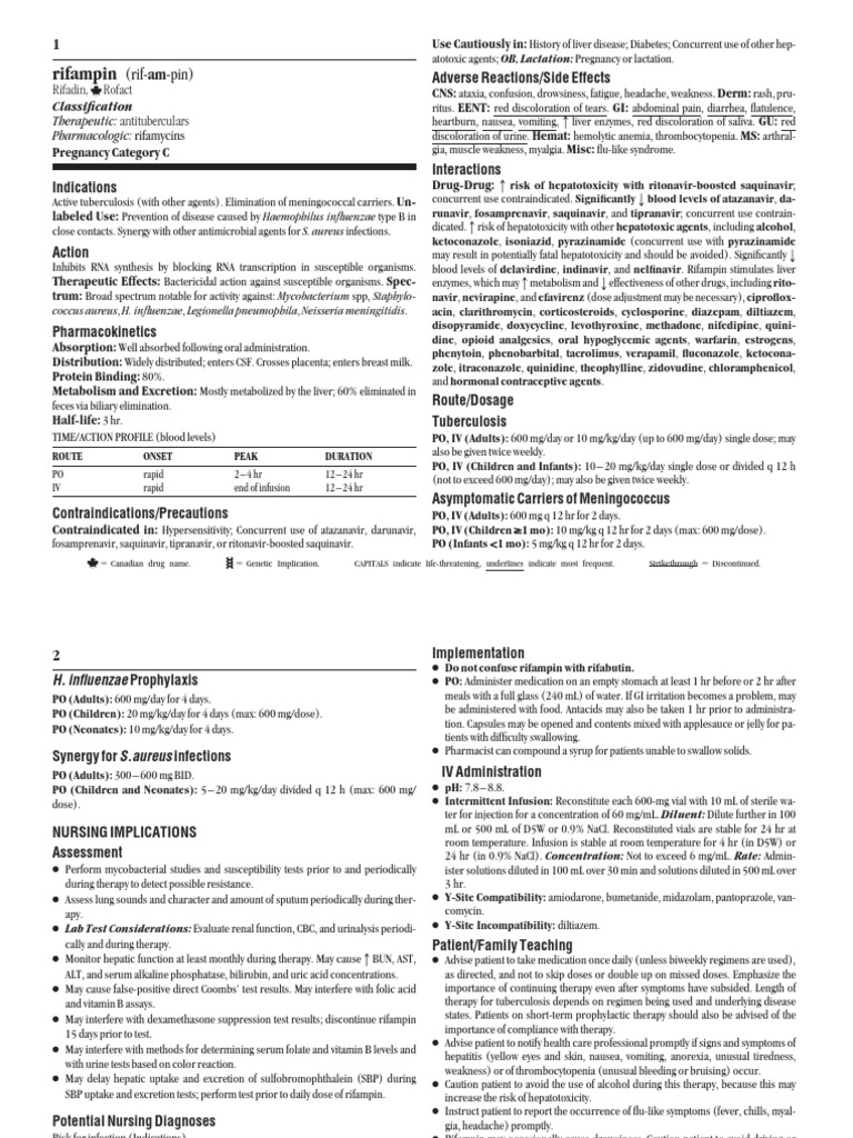 Rifampin med sheet ACTIVE LEARNING TEMPLATES THERAPEUTIC PROCEDURE