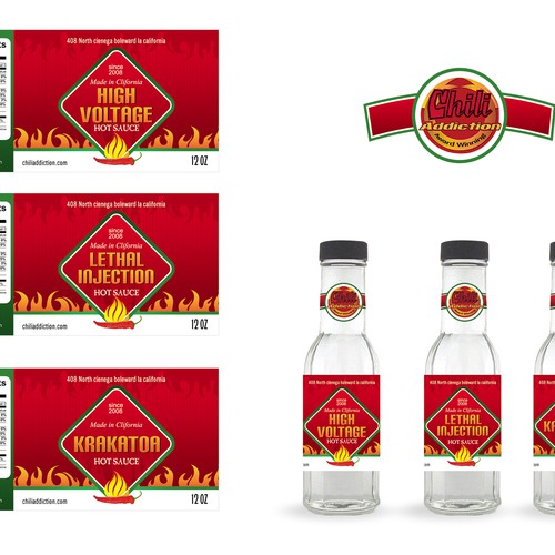 Hot Sauce bottle labels for Chili Addiction Print or packaging design