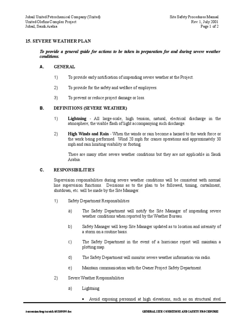 General This Severe Weather Plan Identifies Protective Actions To Take During Severe Weather By.