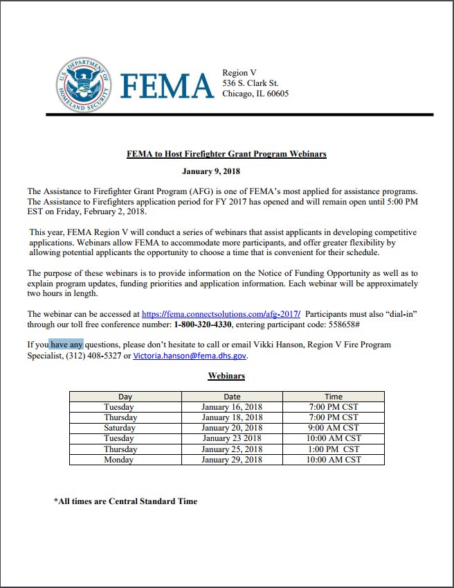 MABAS on Twitter "FEMA to Host Firefighter Grant Program Webinars…
