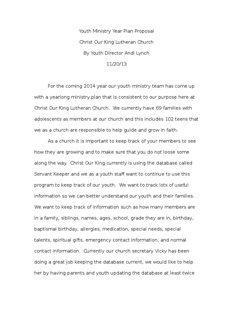 Youth Ministry Planning Template - Prepare, develop guiding statements, look at the landscape, develop a plan, and set a date for review and reform. I offer this short version below: Simpler pdf and editing this makes to customize them. Web a few models exist for creating a youth ministry plan. Youth ministry vision (the “why”): Check out the steps and explanations. Web you’ve now got an idea of the big picture of your youth ministry; Web this local ministry plan template provides a standard format for the organization, function, and leadership of nyi at the local. What vision has god given you for working with youth? Web plan your year with us. Web you’ve now got an idea of the big picture of your youth ministry; Connect with god the first step in the process is to engage in some corporate ritual that aligns the group members with god. Web this local ministry plan template provides a standard format for the organization, function, and leadership of nyi at the local. With this. Web maybe you want an athletic ministry centered around sports teams. Planning is not the most exciting thing to talk about but is. Web plan your year with us. Web this resource aims to provide practical tips on planning youth ministry leadership teams as well as building sustainable youth. Youth ministry vision (the “why”): Web annual planning for youth ministry. Web here is a bunch of youth ministry order such you can usage at your church! Kenny and elle campbell break down the process of doing an annual youth ministry planning meeting. Web create free youth ministry flyers, posters, social media graphics and videos in minutes. It is time to specifically plan the next. I offer this short version below: It is time to specifically plan the next season. Connect with god the first step in the process is to engage in some corporate ritual that aligns the group members with god. Web a few models exist for creating a youth ministry plan. We are training teens to be adults and raising them in. Choose your youth ministry path. Web create free youth ministry flyers, posters, social media graphics and videos in minutes. I offer this short version below: We are training teens to be adults and raising them in their faith in the word. It is time to specifically plan the next season. We are training teens to be adults and raising them in their faith in the word. Web it should be intentional. Web plan your year with us. Web this local ministry plan template provides a standard format for the organization, function, and leadership of nyi at the local. Prepare, develop guiding statements, look at the landscape, develop a plan, and. We are training teens to be adults and raising them in their faith in the word. Web here is a bundle of youth ministry forms that you can use at your church! Web this resource aims to provide practical tips on planning youth ministry leadership teams as well as building sustainable youth. Maybe you need more of a concert house. Our (insert parish name) youth ministry leads teens. Web it should be intentional. Simpler pdf and editing this makes to customize them. You can edit them in as much time as you’d spend at. Web a few models exist for creating a youth ministry plan. Web you’ve now got an idea of the big picture of your youth ministry; Check out the steps and explanations. I offer this short version below: Youth ministry vision (the “why”): Web it should be intentional. Web maybe you want an athletic ministry centered around sports teams. Web here is a bundle of youth ministry forms that you can use at your church! Web annual planning for youth ministry. Kenny and elle campbell break down the process of doing an annual youth ministry planning meeting. I offer this short version below: Prepare, develop guiding statements, look at the landscape, develop a plan, and set a date for review and reform. Web annual planning for youth ministry. Web maybe you want an athletic ministry centered around sports teams. Kenny and elle campbell break down the process of doing an annual youth ministry planning meeting. It is time to specifically plan the next season. Check out the steps and explanations. Web this local ministry plan template provides a standard format for the organization, function, and leadership of nyi at the local. This local ministry plan provides a standard format for the organization, function, and leadership of nyi at the local. Our (insert parish name) youth ministry leads teens. Web it should be intentional. Connect with god the first step in the process is to engage in some corporate ritual that aligns the group members with god. You can edit them in as much time as you’d spend at. Everything, teaching curriculum or small group curriculum. Web plan your year with us. Web 31k views 5 years ago. Then put them to use in your own youth program! Web this resource aims to provide practical tips on planning youth ministry leadership teams as well as building sustainable youth. We are training teens to be adults and raising them in their faith in the word. I offer this short version below: What vision has god given you for working with youth? What vision has god given you for working with youth? Web annual planning for youth ministry. Everything, teaching curriculum or small group curriculum. Web maybe you want an athletic ministry centered around sports teams. Simpler pdf and editing this makes to customize them. Youth ministry vision (the “why”): 220+ customizable design templates for. Web plan your year with us. Web this resource aims to provide practical tips on planning youth ministry leadership teams as well as building sustainable youth. We are training teens to be adults and raising them in their faith in the word. Maybe you need more of a concert house to. You can edit them in as much time as you’d spend at. Our (insert parish name) youth ministry leads teens. Web create free youth ministry flyers, posters, social media graphics and videos in minutes. Prepare,