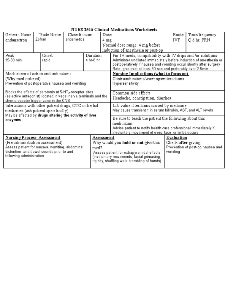 Ondasetron template ATI zofran medication NUR2502 Studocu
